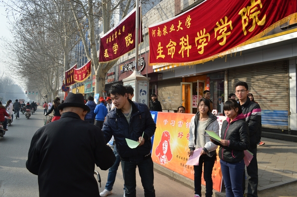 在校本部东门摆设宣传摊位,对雷锋精神进行宣传,斗地主在线玩