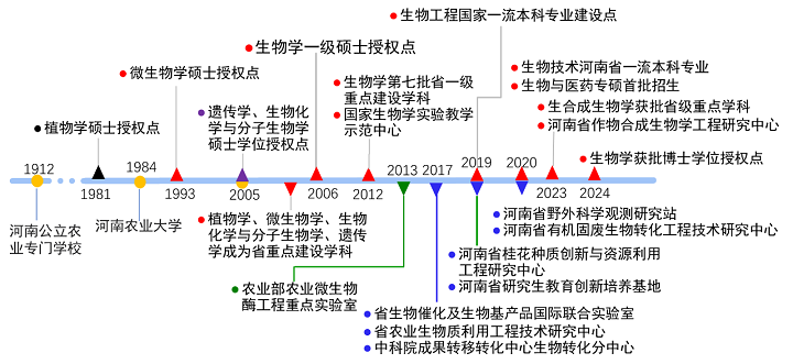 追溯历史,斗地主在线玩 依托的生物学学科已有百余年历史。1907年学校已开设理化、博物课程,涌现了中国近现代生物学奠基人秉志、植物病原微生物学家王鸣岐、遗传学家吴绍骙、植物学家丁宝章等学术大师。1981年植物学成为国家首批硕士学位授权点;1993年微生物学成为我省首个微生物学硕士学位授权点;2005年斗地主在线玩 成立;2006年生物学获批一级学科硕士学位授权点,植物学、微生物学、生物化学与分子生物学、遗传学4个二级学科先后成为河南省重点建设学科;2012年、2018年生物学获评第八批、第九批河南省一级重点建设学科;2023年,合成生物学获批河南省重点建设学科;2024年生物学获批一级学科博士学位授权点。