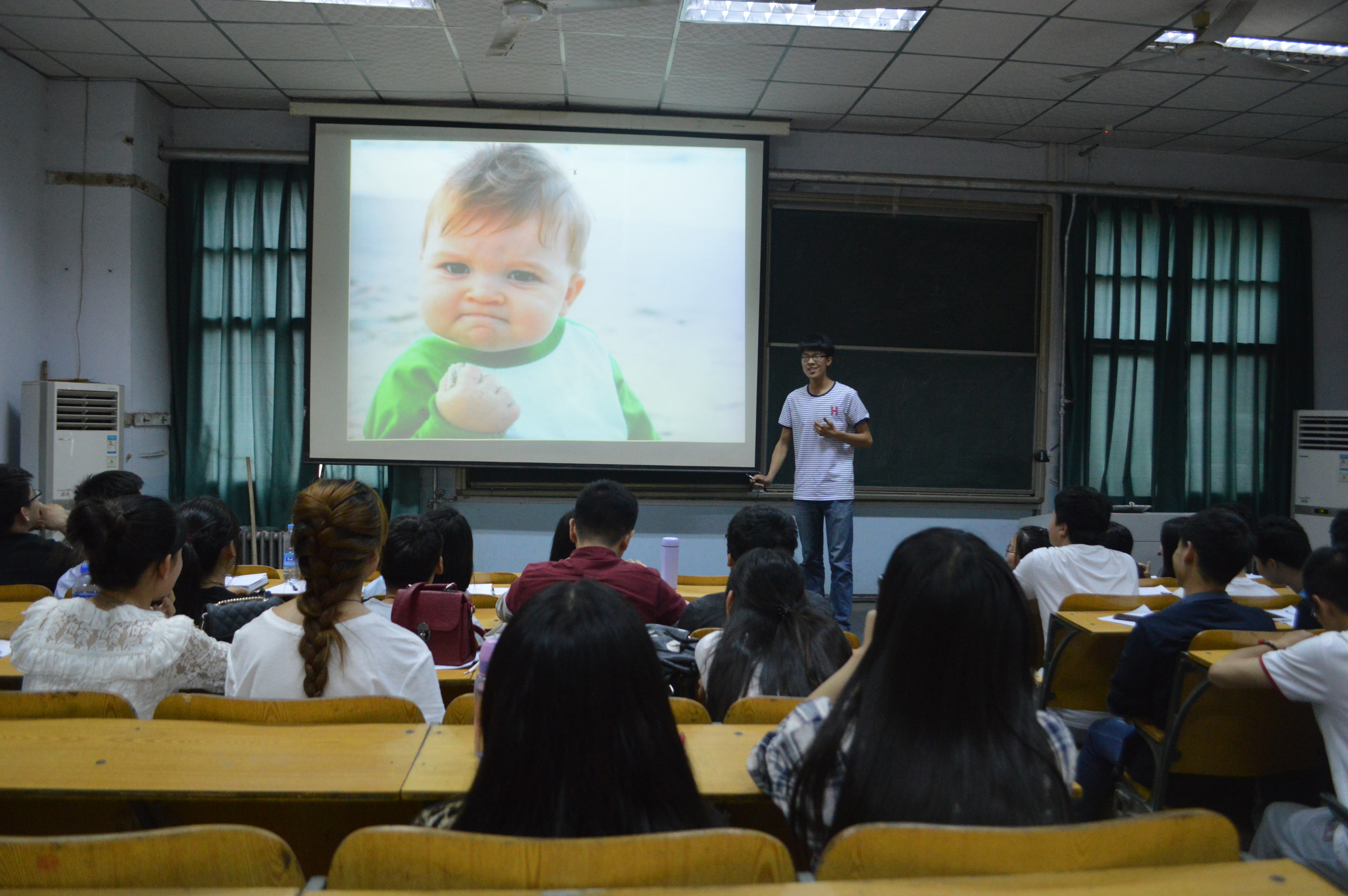 首先,由黄笑老师宣读评选规则和要求,并鼓励选手要调整状态,以平常心态迎接评选,尽全力把自己优秀的一面尽情展现出来。紧接着,由19位参评选手抽签依次登台演说,内容包括PPT展示和观众投票两个环节,19位参评选手按照抽签顺序依次。各位选手在PPT展示的过程中或激情洋溢,或沉着自信,或幽默睿智,展现了他们优异的成绩、多彩的校园生活和丰富的社会实践活动,充分体现了当代大学生的风采。各候选人的精彩表现博得与会代表们的阵阵掌声。展示结束后,雷雯老师做总结讲话,她指出此次评选大会旨在全面调动同学们努力学习、奋发成才的积极性,希望大家能够向19位优秀的同学学习,见贤思齐,积累生活中的点滴,厚积薄发,点亮青春智慧,向大家证明生命学子的才能与潜力。