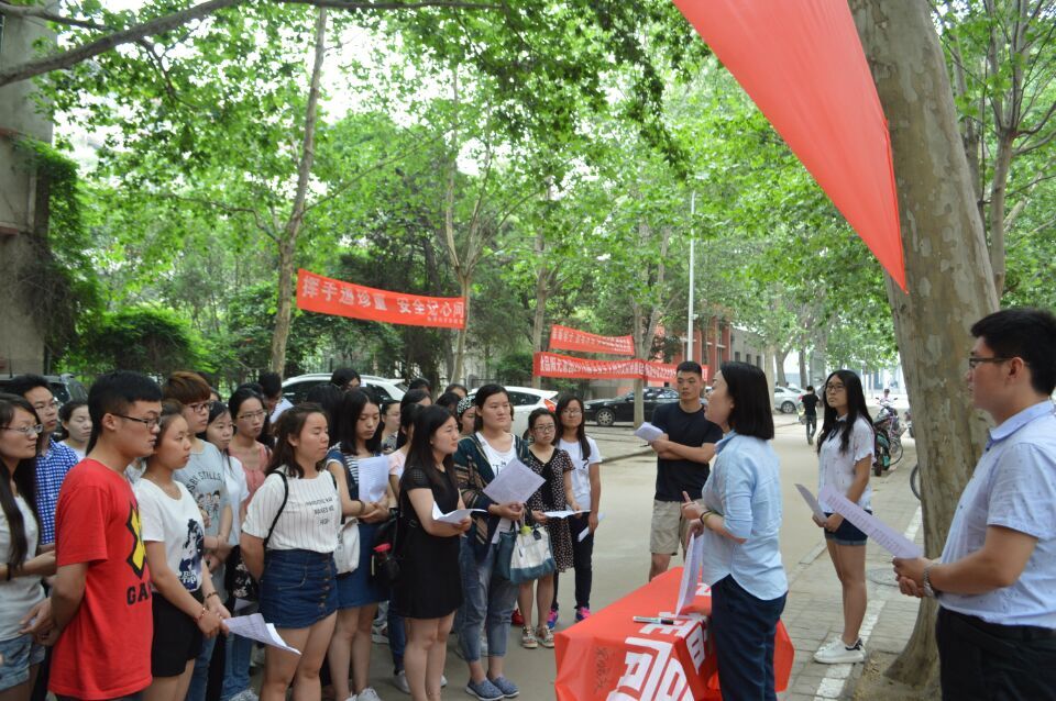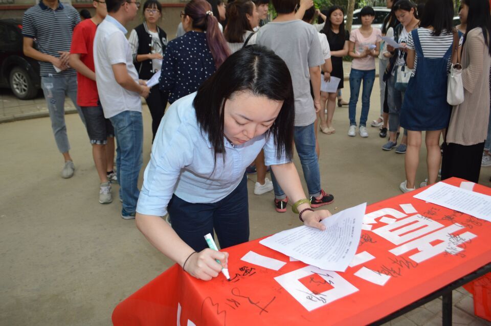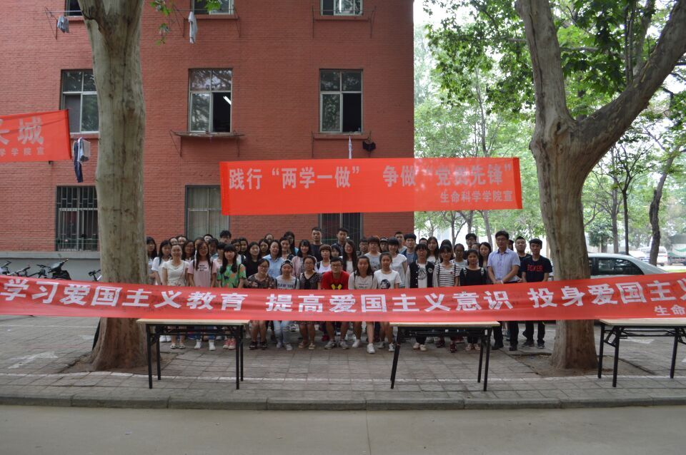 在文化路校区8号楼前开展了一场弘扬“爱国主义”,践行“两学一做”宣讲签名教育活动。参加此次活动的有院党委副书记胡明忠,院团委书记雷雯,院团委副书记黄笑,以及学院各学生党支部正式党员和预备党员。