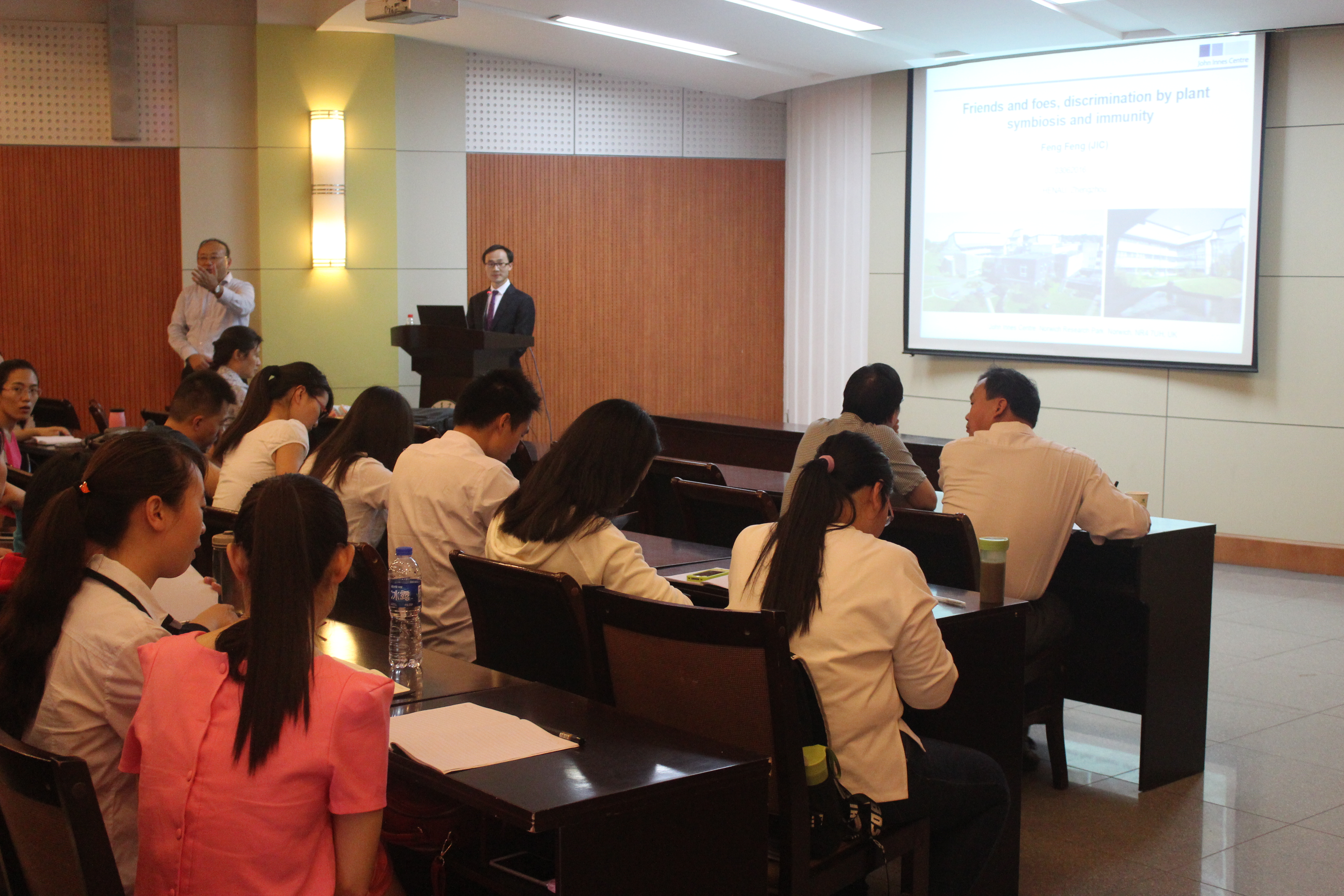 邀请,在我校文化路校区校礼堂100人报告厅,冯峰博士做了题为《Friends and foes,discrimination by plant symbiosis and immunity》的学术报告,参加报告会的有生命科学、农学院、植物保护等学院的广大师生。