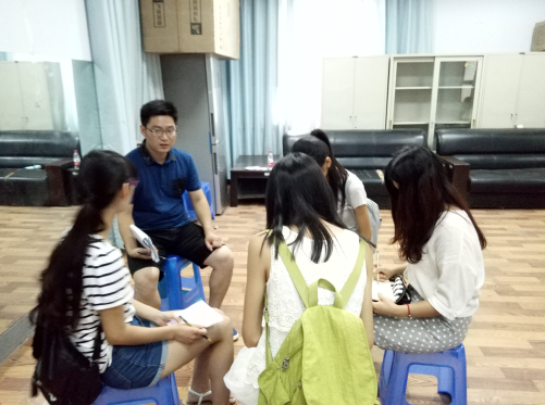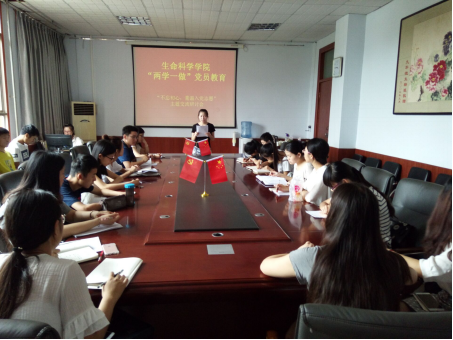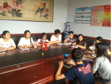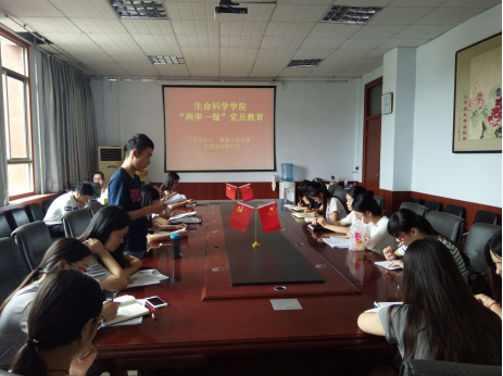 “两学一做”党员教育之“不忘初心,重温入党志愿”主题交流研讨会在一号楼309会议室进行,参会人员有第二党支部书记黄笑老师,团委辅导员姚欣老师和三个学生党支部正式党员和预备党员。