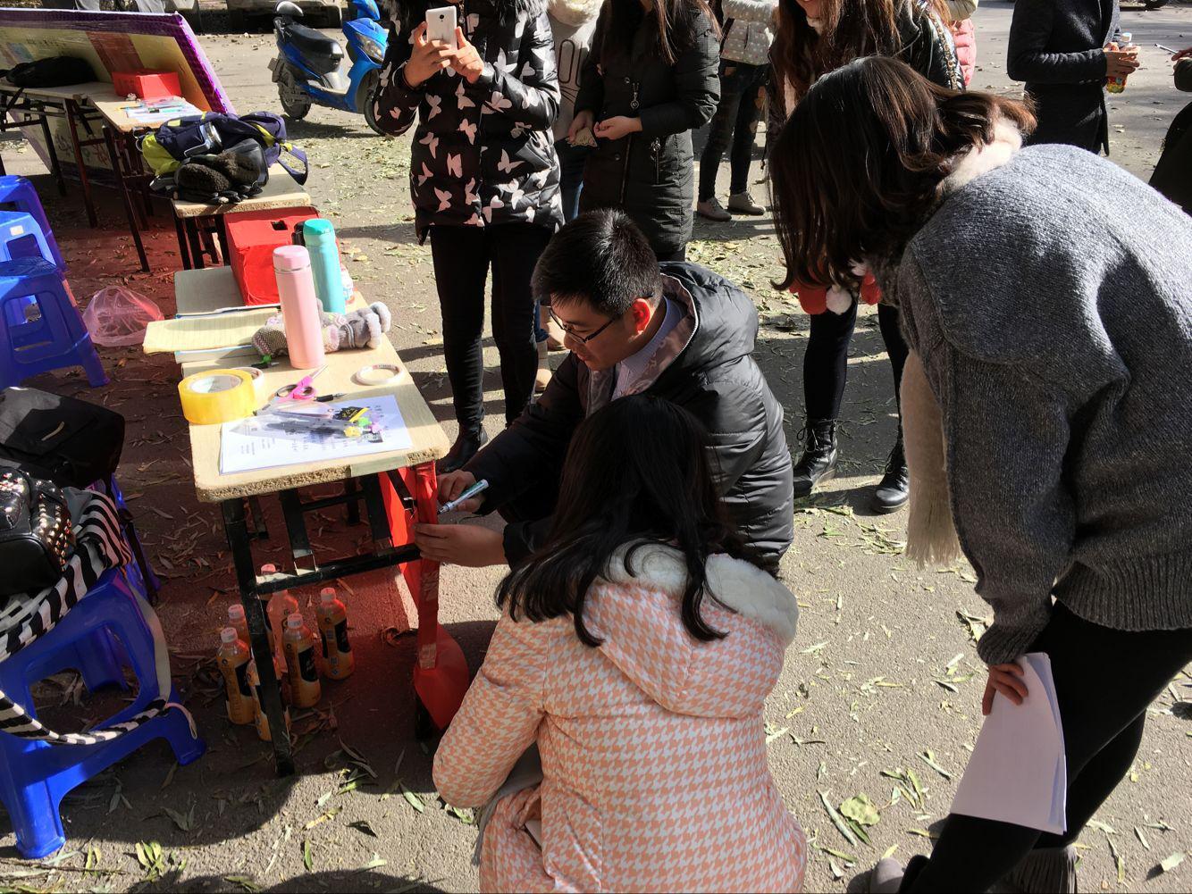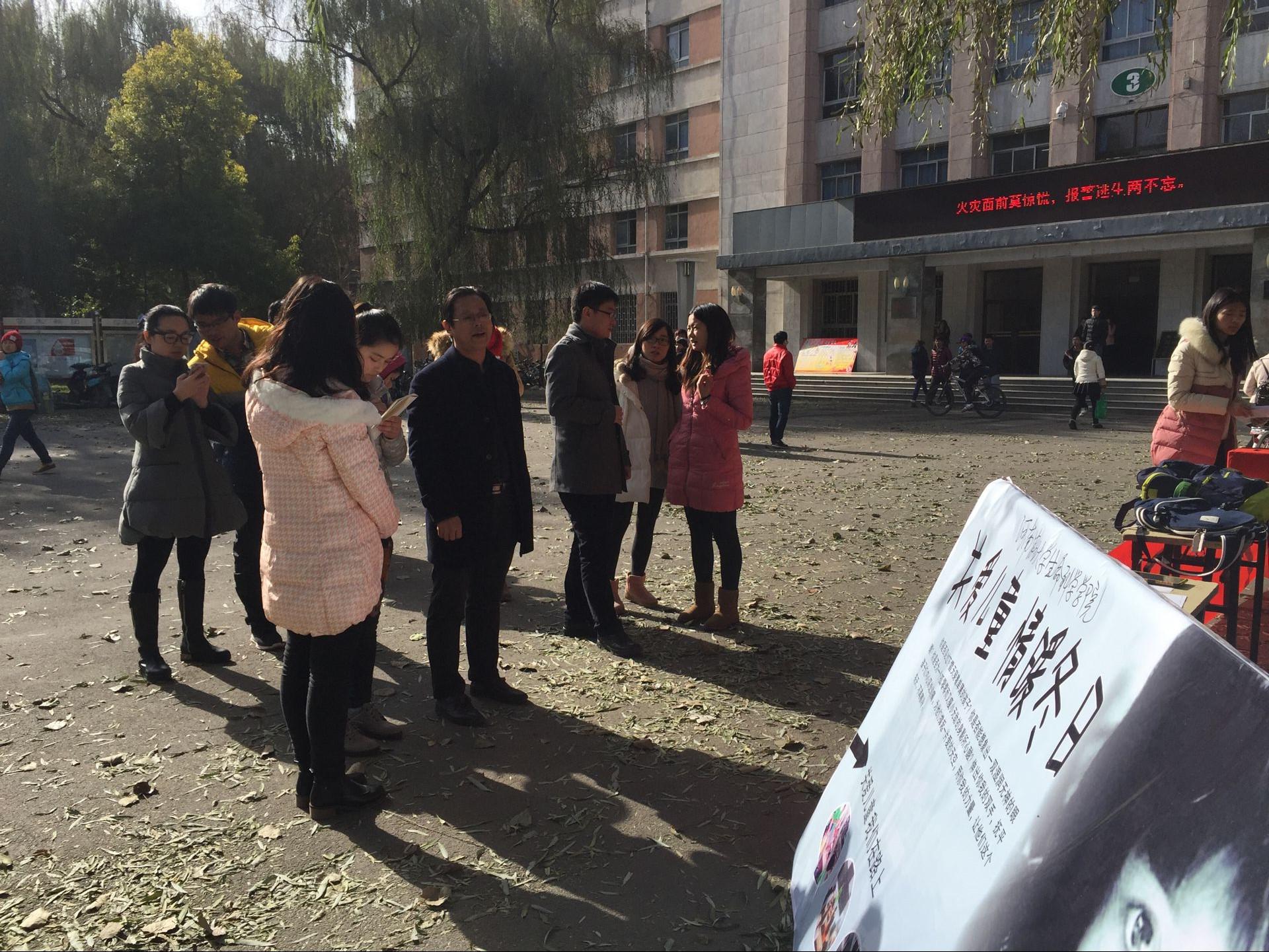 党委副书记刘全军、团委雷雯老师、黄笑老师和学生志愿者们结合宣传页内容,一起为过往师生积极宣讲,使过往师生能够真正了解这些需要帮助的儿童,并奉献出自己的一份爱心。虽然寒风凛冽,志愿者们无畏严寒激情宣讲,过往师生无不驻足倾听,积极捐钱,捐物。