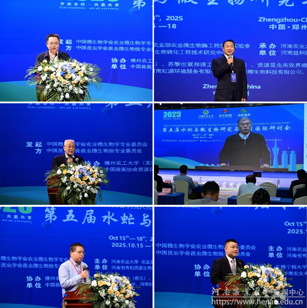 本网讯(通讯员 胡延如 史明子)10月16日至18日,由我校牵头主办的第五届水虻与微生物研究与应用国际研讨会(The 5th International Symposium on Research and Application of Black Soldier Fly and Microbes)在郑州举行。本次会议以“无废城市 循环农业”为主题,围绕有机固废资源化利用、黑水虻与微生物协同技术、昆虫蛋白产业化等前沿议题展开深入交流,旨在推动产学研融合与国际合作,服务国家绿色低碳循环发展战略。