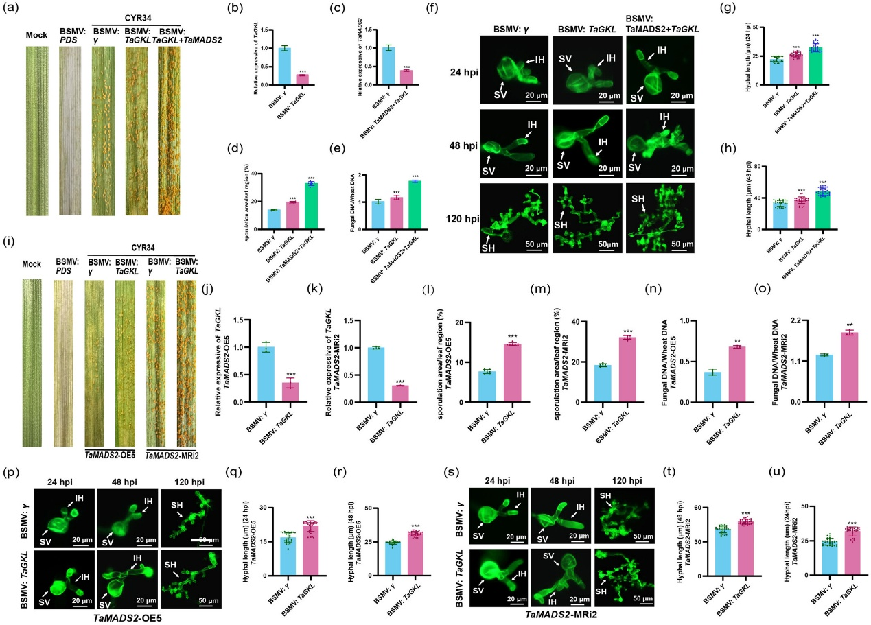 图6. TaMADS2-TaGKL协同调控小麦对条锈病的抗性