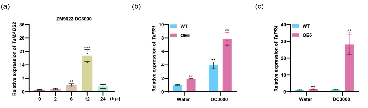 图4. TaMADS2受DC3000诱导并增强防御基因的表达