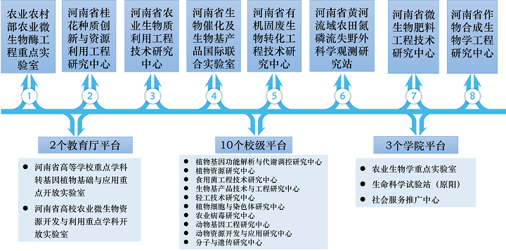 学院拥有农业部农业微生物酶工程重点实验室、河南省桂花种质创新与资源利用工程研究中心、河南省作物合成生物学工程研究中心等8个省部级科研平台,10个校级研究中心,两个团队入选河南省创新型科技团队。近年来,发表高水平论文617篇,其中重要学术成果发表在Nature Communications、Plant Cell、PNAS、Nucleic Acid Research、Molecular Plant等国际高水平学术期刊上;主持“十四五”重点研发计划、国家重点基础研究发展计划(973)课题和国家自然科学基金国际合作项目等项目、国家自然科学基金项目58项、省重大专项课题等省部级重点课题10余项以及1项863课题项目、6项863子课题项目和6项973子课题项目,省部级其他项目121项,年均经费2800万元。